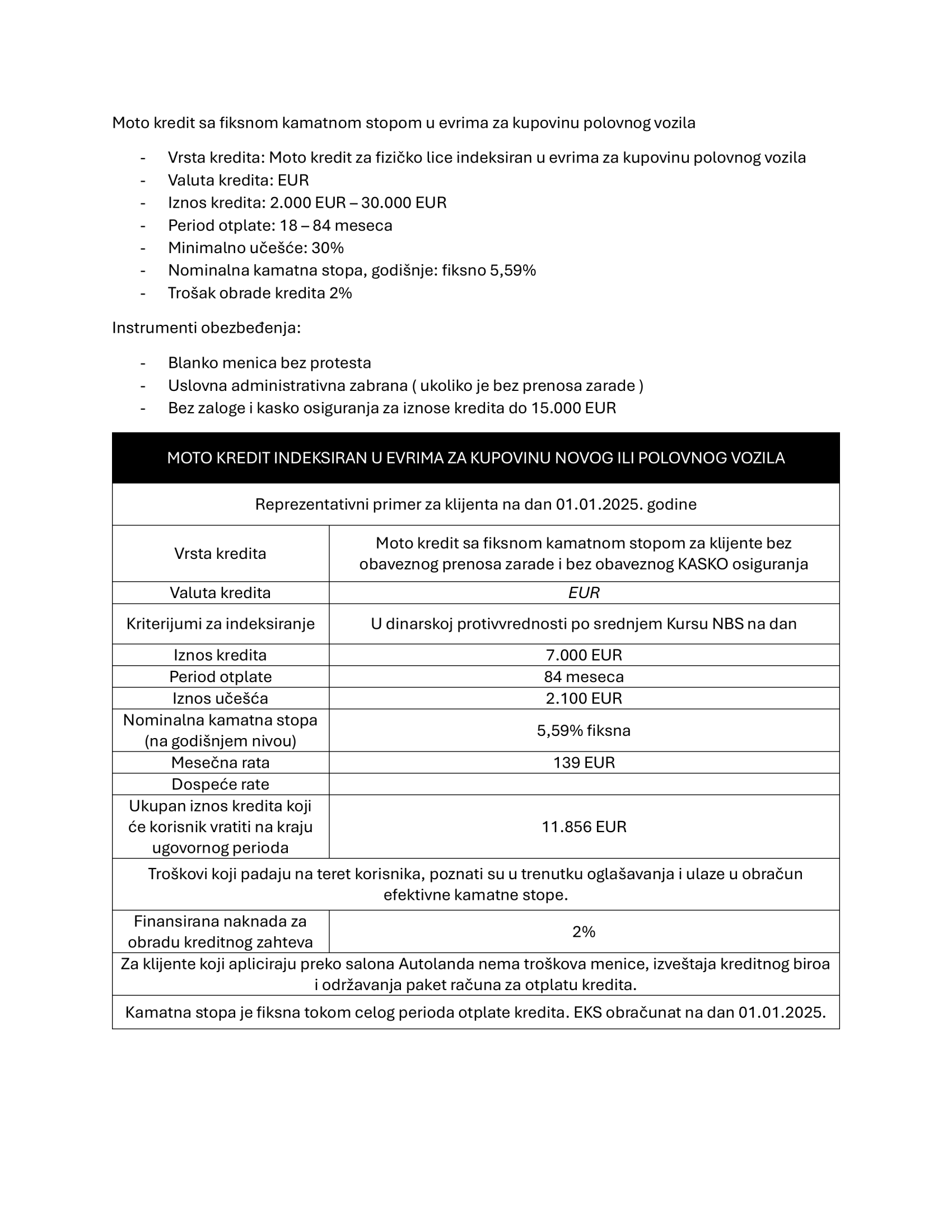 U svim slučajevima gde je obezbeđenje kredita zaloga na vozilo, prilikom odobravanja kredita javljaju se troškovi osiguranja, pribavljanja uverenja, potvrda, dozvola, izjava i rešenja nadležnih organa, troškovi konstituisanja založnog prava i slično. Navedeni troškovi obuhvaćeni su reprezentativnim primerom.